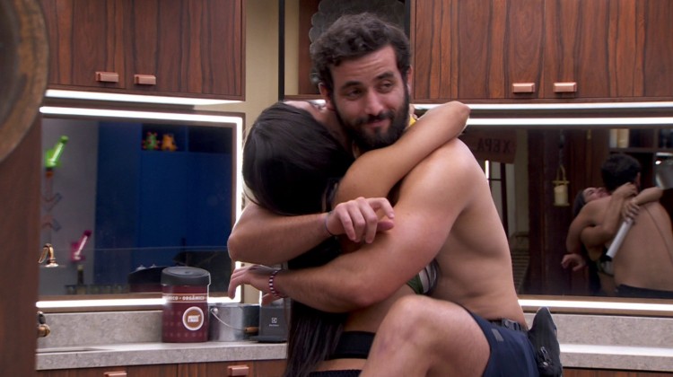 Isabelle e Matteus continuam a bater papo na cozinha do 24. Enquanto a manauara cozinha, o gaúcho faz uma brincadeira com ela e a chama para um abraço.