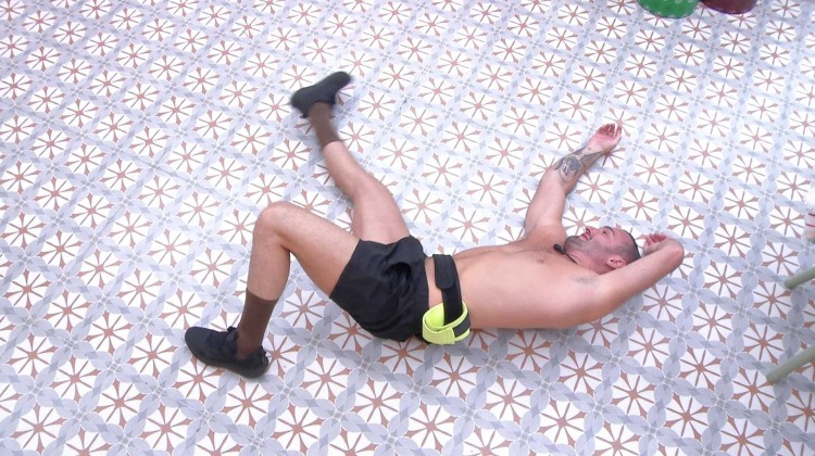 Diego Hypolito deita no chão da cozinha do BBB 25 e diz: 'Estou exausto'