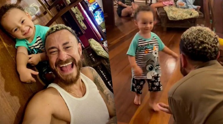 Fred reencontra o filho, Cris, com direito à cosquinha e brincadeira com bola; veja vídeo!