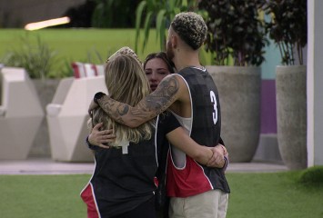 Após voltar da Prova do Líder, Sarah Aline e Marvvila abraçam Dania Mendez. A modelo está muito...