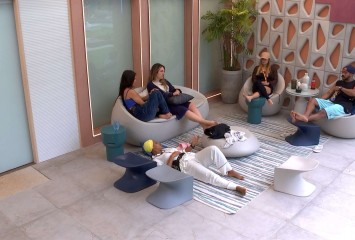 Na área externa, Aline Wirley, Amanda, Bruna Griphao e Larissa conversam sobre a carreira de atriz...